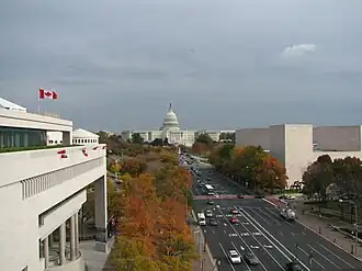 Pennsylvania Avenue as seen from the terrace of the Newseum next to the Canadian Embassy.