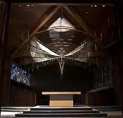 The Abbey's Church of St. Gregory the Great contains a wire sculpture titled Trinity, created by the late American sculptor Richard Lippold in 1960. The sculpture is made of a 22,000 foot web of gold plated wire surrounding a gold and silver Crucifix, created by Meinrad Burch. The sculpture underwent an award-winning restoration in 2009, carried out by Newmans’ Ltd., of Newport, Rhode Island.[9]