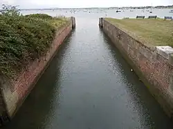 This section of the canal ran from Langstone Harbour, across the east and central areas of Portsea Island through Milton, Fratton and Landport ending at a canal basin on what is now Arundel Street, which was named after the canal.[6] This section of the canal was built to what were then small ship canal standards and could take ships of up to 150 tons.[7] There were 2 locks at Milton, a sea lock and an upper lock.