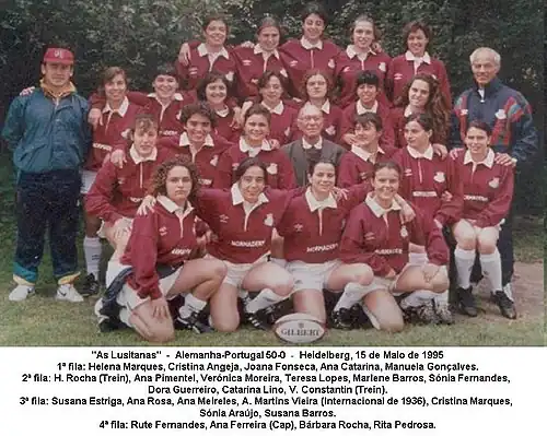 The Portugal national women's rugby union team are a national sporting side of Portugal, representing them at rugby union. They played their first test in 1995 against Germany.
