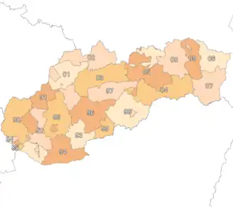 2-digit postcode areas Slovakia (defined through the first two postcode digits)