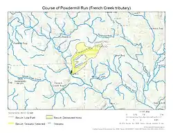Course of Powdermill Run (French Creek tributary) in Pennsylvania