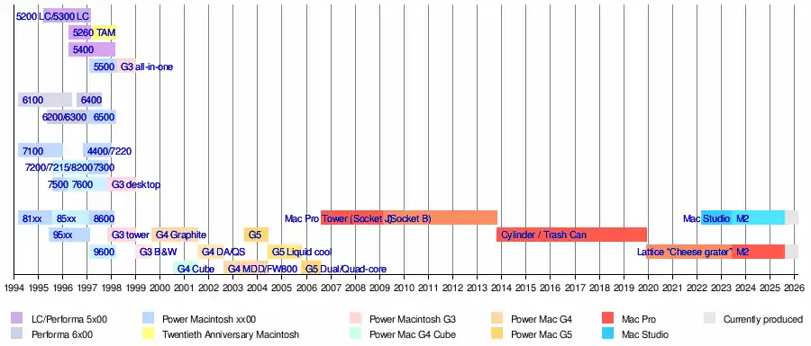 Mac ProMac StudioMac ProMac StudioMac ProMac ProMac ProPower Mac G5Power Mac G5Power Mac G4Power Mac G5Power Mac G4Power Mac G4 CubePower Mac G4Power Macintosh 9600Power Macintosh G3Power Macintosh 8600Power Macintosh 9500Power Macintosh 8500Power Macintosh 8100Power Macintosh G3Power Macintosh 7600Power Macintosh 7300Power Macintosh 4400Power Macintosh 7500Power Macintosh 7200Power Macintosh 7100Power Macintosh 6500Power Macintosh 6400Power Macintosh 6200Power Macintosh 6100Power Macintosh G3Twentieth Anniversary MacintoshPower Macintosh 5500Power Macintosh 5400Power Macintosh 5260Power Macintosh 5200 LC
