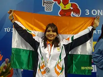 She has won 22 medals in the National Championships, National Games and Federation Cups in India. She holds the national record of having most medals at senior level in National Championships for one state team.[8] She is first woman Basketball player in India to represent the National team in one 2006 Commonwealth Games & two Asian Games 2010, 2014 respectively.
