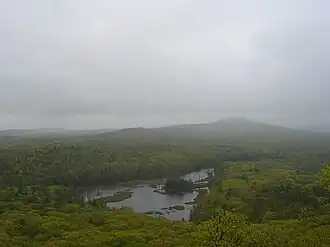 New Ipswich Mountain is located directly to the north along the Wapack ridgeline; to the southeast rise Binney Hill 1,441 feet (439 m), Emerson Hill 1,551 feet (473 m), Nutting Hill 1,620 feet (490 m), and Mount Watatic, the southern terminus of the Wapack Range.