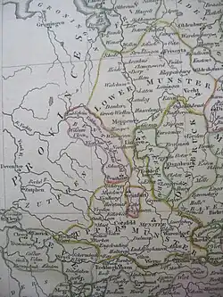 ![]() Map of part of the Lower Rhenish–Westphalian Circle in 1560, Prince-Bishopric of Münster highlighted in red | |||||||||||||||
