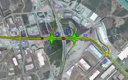 As a part of the Transform 66 project, the current at-grade intersection of SR 234 and Balls Ford Road will be converted to a diverging diamond interchange at a cost of $167 million. As a part of this project, Balls Ford Road will be realigned about 0.50 miles (0.80 km) south, where the interchange will be constructed, and a new grade-separated bridge will be built over the Norfolk Southern Railroad Line. In addition, Balls Ford Road would be widened from a two lanes street to a four-lane divided roadway between its intersection at Devlin Road / Wellington Road through the interchange to Doane Drive. This project coincides with a separate project to widen Balls Ford Road between Doane Drive to Ashton Avenue. Construction is expected to begin in fall 2020 and be completed in late 2022.[2][3][4]