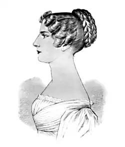As a niece of Frederick the Great, there were often talks of possible matches for Louise. One such candidate was Prince Max of Bavaria, the heir-presumptive of Charles Theodore, Elector of Bavaria. The Elector sent an ambassador to Friedrichsfelde in 1785, most likely to inspect Louise's general appearance and character.[6] In the end however, Louise was considered too young, as Prince Max had wanted to marry her within the year; her father conversely refused to part from her until she was eighteen.[7] Max soon afterwards married Princess Augusta Wilhelmine of Hesse-Darmstadt instead.