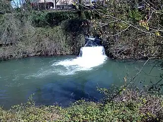 Clark Creek, another small tributary rising south of the city's center, enters Pringle Creek from the left at Bush's Pasture Park. Pringle Creek then flows between the park and Deepwood Estate, crosses under Mission Street, flows between Salem Cardiology and the site of the former Oregon School for the Blind on the left and Salem Hospital and Pringle Park on the right. After passing under the hospital, the creek receives Shelton Ditch, which carries water diverted from Mill Creek, from the right. Pringle Creek then flows through Pringle Plaza to Mirror Pond, where the Mill Race, another diversion from Mill Creek, enters from the right. The combined waters then flow under a small bridge on Commercial Street and past a modern apartment complex that sits on land that was previously occupied by a Boise Cascade mill. The creek then empties into Willamette Slough on the Willamette River.[6][7]