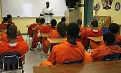 Education in prison was initially introduced by Superintendent Zebulon Brockway in the late 1800s as a way to rehabilitate prisoners at the Elmira Reformatory he ran in New York.[5] Brockway was the first to implement a points-based behavior system that identified low risk offenders at the Monroe County Penitentiary as eligible participants for industrial/trade schools, moral education, and academia programs (Gehring, 1982).[5] While prison education programs have existed in some capacity for decades, there has been a surge of interest and expansion of programs since 2014.[6] This heightened attention corresponds with the declining prison population after hitting peak incarceration rates between 2006 and 2008, as well as growing bipartisan support for criminal justice reform. Providing access to education aligned with employers' needs has been viewed as one strategy for facilitating the rehabilitation and reentry of justice-involved individuals.