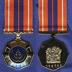 - Succeeded by the Bophuthatswana Police Medal for Combating Terrorism of the Republic of Bophuthatswana.[7]