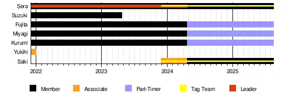 - ^ Saki turned as an official member of the unit since April 23, 2024, during the third reign of the Wave Tag Team Championship alongside Risa Sera.