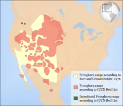- ^ a b c d e f IUCN SSC Antelope Specialist Group (2017) [errata version of 2016 assessment]. "Antilocapra americana". IUCN Red List of Threatened Species. 2016: e.T1677A115056938. doi:10.2305/IUCN.UK.2016-3.RLTS.T1677A50181848.en. Retrieved 31 August 2020.