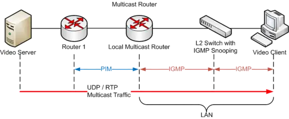 PIM-SM is commonly used in IPTV systems for routing multicast streams between VLANs, subnets or local area networks.[5]