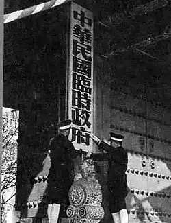 3. ^ traditional Chinese: 中華民國臨時政府; simplified Chinese: 中华民国临时政府; pinyin: Zhōnghuá Mínguó Línshí Zhèngfǔ, or Japanese: 中華民国臨時政府, romanizedChūka Minkoku Rinji Seifu