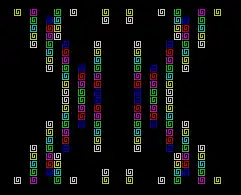 Psychedelia allowed a user to generate a light show on the screen grid, using the joystick to send pulses or bursts of coloured squares. There are various preset settings, or the user can manually set the variables controlling the pulses. Patterns can be recorded to memory or tape for later playback.[4]