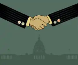 Public–private partnerships are often represented by a handshake, symbolizing the private and public partners coming to an agreement.