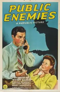 Public Enemies is a 1941 American comedy film directed by Albert S. Rogell and written by Edward T. Lowe Jr. and Lawrence Kimble. The film stars Wendy Barrie, Phillip Terry, Edgar Kennedy, William Frawley, Marc Lawrence and Nana Bryant. The film was released on October 30, 1941, by Republic Pictures.[1][2][3]