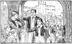 "By a public school, we mean an endowed place of education of old standing, to which the sons of gentlemen resort in considerable numbers, and where they continue to reside, from eight or nine, to eighteen years of age. We do not give this as a definition which would have satisfied Porphyry or Duns-Scotus, but as one sufficiently accurate for our purpose. The characteristic features of these schools are, their antiquity, the numbers, and the ages of the young people who are educated at them ...".[17]