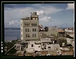 Puerto Rico Ilustrado/El Mundo Building (Spanish: Edificio El Mundo/Puerto Rico Ilustrado) is a historic Art Deco high-rise building located in the Old San Juan historic district of the city of San Juan, Puerto Rico. The building was erected in 1923 to serve as the headquarters of the El Mundo newspaper and the Puerto Rico Ilustrado magazine.[1] The architecture of the building blends numerous styles that represent the conjunction of various artistic movements and architectural schools of the late 19th century and the early 20th century. It is located in a high-rise block that faces the elevated La Palma Bastion portion of the city wall of San Juan which, when observed from beyond, makes the building look taller than it is in reality. The building was added to the National Register of Historic Places in 1997 for its architectural and historic importance.[2]
