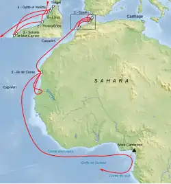 Himilcon's journey can be traced only to some comments made by Avienius, which he claims come from ancient Punic records he might have accessed. Another hypothesis is that King Juba II based his geographical knowledge of the Nile's origins on Punic books that he kept at his court – as recorded by Amianus Marcellinus – indicating that the river's headwaters were on a mountain in Mauritania.[4]