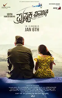 Pushpaka Vimana is a 2017, Indian Kannada drama film directed by S. Ravindranath, making his debut.[1] The film stars Ramesh Aravind, acting in his 100th Kannada film, as the protagonist playing the father role.[2] Rachita Ram and Baby Yuvina Parthavi play the daughters role. Prominent Bollywood actress Juhi Chawla is seen in a song sequence, marking her re-entry to Kannada films after 18 years.[3] The film's title is borrowed from the 1987 silent film of the same name.[4]
