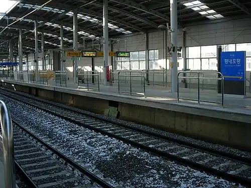 Pyeongnaehopyeong Station (Korean: 평내호평역}; Hanja: 坪內好坪驛) is a railway station of the Gyeongchun Line in Pyeongnae-dong, Namyangju-si, Gyeonggi-do, South Korea.