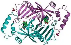 - ^ PDB: 1jnw; di Salvo ML, Ko TP, Musayev FN, Raboni S, Schirch V, Safo MK (January 2002). "Active site structure and stereospecificity of Escherichia coli pyridoxine-5'-phosphate oxidase". Journal of Molecular Biology. 315 (3): 385–97. doi:10.1006/jmbi.2001.5254. PMID 11786019.