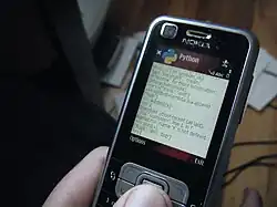 Python for S60, also called PyS60—a term reminiscent of the Unix naming convention—is a port of the Python programming language developed by Nokia for its S60 software platform, originally based on Python 2.2.2 from 2002.[1] The final version, PyS60-2.0.0, was released on 11 February 2010. It came with multiple improvements, the most notable of which was an update to a new core based on Python 2.5.4.[2]