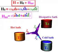 - ^ Gelbwaser-Klimovsky, D.; Alicki, R.; Kurizki, G. (2013). "Minimal universal quantum heat machine". Physical Review E. 87 (1): 012140. arXiv:1209.1190. Bibcode:2013PhRvE..87a2140G. doi:10.1103/PhysRevE.87.012140. ISSN 1539-3755. PMID 23410316. S2CID 18826566.