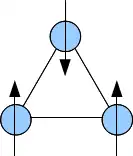 The quantum spin liquid state was first proposed by physicist Phil Anderson in 1973 as the ground state for a system of spins on a triangular lattice that interact antiferromagnetically with their nearest neighbors, i.e. neighboring spins seek to be aligned in opposite directions.[2] Quantum spin liquids generated further interest when in 1987 Anderson proposed a theory that described high-temperature superconductivity in terms of a disordered spin-liquid state.[3][4]