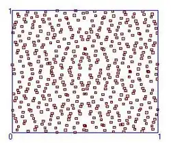 It turns out there is a well-developed part of number theory which deals exactly with this desideratum. Discrepancy is a measure of deviation from uniformity so what one wants are low discrepancy sequences (LDS).[4] An example of distribution with 500 LDS points is given in Figure 2.