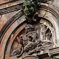 The front of the hotel originally included arched windows with eight carved heads, with four heads located over the ground floor windows and four over the first floor. The front also features cherubs, a satyr playing the pan flutes, floral designs, eagles, and keystones carved as human heads.[2] The ground floor carvings have since been removed and the front of the building modernised.