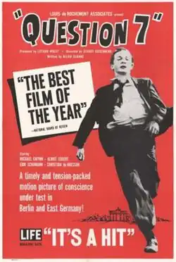 Question 7 is a 1961 American-West German film directed by Stuart Rosenberg and starring Michael Gwynn, Margaret Jahnen and Christian de Bresson. It won the National Board of Review Award for Best Film. It was also entered into the 11th Berlin International Film Festival.[1]