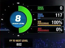 During the game, a user's team receives fantasy points based on the performance of the players. These points help the user improve the team, allowing QHF players to reach higher levels. To level QHF players up, a user spends 1,000 Coaching Points (CP) to move a player up one level, though they may choose to move a player up multiple levels in one transaction.[4] Additionally, Coaching Points and another currency, Quick Cash (QC), can be purchased in various increments from $5 to $50. "Legend" players cost extra but automatically leveled up with you as you progressed in the game and became very popular.