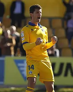 Quini celebrates a goal for Alcorcón in 2012