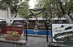 The caravanserai, locally known as "Taşhan" for "stoney commercial building", today houses around hundred workshops and souvenir shops. Many of which sell prayer beads, rings and necklaces, made of local Oltu stone.[1][2][3]