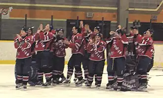 Prior to the existence of the League, some collegial teams played with university teams in the Quebec University Women's Hockey League (QSSF).[3][4][5] The first-ever Canadian Interuniversity Athletic Union (CIAU) National title for women's ice hockey was held at the end of the 1997-98 CIAU season and two Québécois college teams participated at the tournament:[6] Cégep St-Laurent[7] and Collège Jean-de-Brébeuf. The Ligue de hockey féminin collégial AA was founded in 1999 to provide opportunities for young females to develop into collegiate student-athletes. It was developed to bring together teams that regularly produce players for competition at the Canadian Interuniversity Sport women's ice hockey championship and NCAA National Collegiate Women's Ice Hockey Championship levels, respectively. The inaugural season was in 1999-2000, and the Patriotes du collège St-Laurent won the Playoff Championship title.[8] A national championship for college athletics in Canada was approved at the advent of the 2001-02 season.