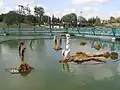 In the center of the park lies a triangular-shaped lake, reminiscent of the emblem that represents the city. Spanning the lake is a pedestrian bridge. In addition to the bridge, the lake has two fountains. The park offers a variety of relaxation and sports venues, a small zoo, art by Israeli sculptors, an outdoor gym and children's playground, a park with access to those with disabilities, a labyrinth, a garden of the seven fruits and grains mentioned in the Bible and more. The park has 675 fruit and ornamental trees. The park also features a café-restaurant, an art gallery, 2 kilometers (1.2 miles) of walking and biking trails, sports fields, an animal corner, sculptures, a rose garden, a herb garden, and expansive grassy areas. At a high point in the park, the Birdwatch offers panoramic views towards the lake and the southern-western expanses of the park. In the northwestern part of the park, an amphitheater is used to host various cultural performances featuring artists from both Israel and abroad. Many noteworthy acts have performed at this theater such as Backstreet Boys, Avance, Alice Cooper, Lauryn Hill, Tori Amos, Chick Corea, Ian Anderson, Ziggy Marley, The Cranberries, and the Pet Shop Boys.[4]