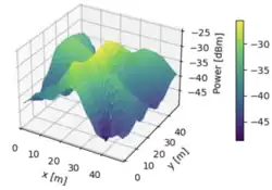 Radio maps,[1][2][3][4] also known as radio environment maps,[5] describe how radio waves spread across a geographical region. The main types of radio maps are signal strength maps and propagation maps. Signal strength maps provide a metric that quantifies the received power at each location. In turn, propagation maps characterize the propagation channel between arbitrary pairs of locations.