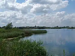 Radymno fell under German occupation, and the Einsatzgruppe I entered the town to commit various atrocities against the populace.[8] Officers of the local Polish military unit were among the victims of the large Katyn massacre, which was carried out by the Russians in April–May 1940.[9] During the war, groups of the Organization of Ukrainian Nationalists, which operated in the area, murdered 59 Poles, including 29 killed in the village of Michałówka. Of the estimated 1,200 Jews in Radymno prior to the World War II only a handful survived, many were handed over by the Ukrainian's collaborators to the Germans and their Nazi regime. Some of the Jews were murdered by the Nazis outside the town in September 1939. The Germans operated a forced labour camp for Jews in the town in 1942–1943.[10] The story of the Jewish residents of Radymno is documented in Dov Hister book The Power of Survival.