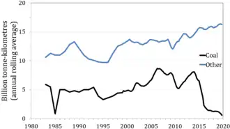 Freight15.76 billion net tkm (2023/24)[3]