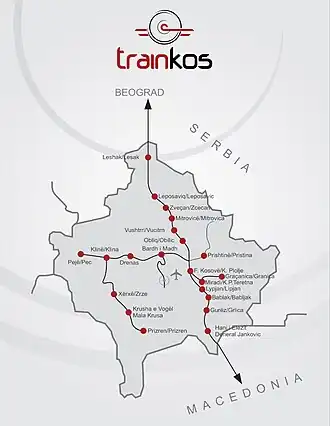 - ^ "Hekurudhat". kosovorailway.com. Archived from the original on 28 February 2014. Retrieved 2 March 2014.