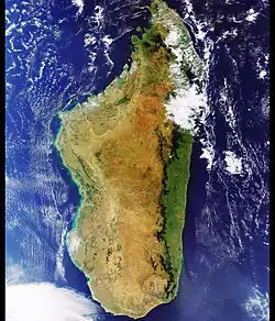 - The windward side of the island of Madagascar, which sees easterly on-shore winds, is wet tropical, while the western and southern sides of the island lie in the rain shadow of the central highlands and are home to thorn forests and deserts. The drying effect of the central highlands extends into southeastern Mozambique in spite of the Mozambique Channel in between. The same is true for the island of Réunion.