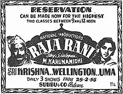 - ^ "Raja Rani". The Indian Express. 23 February 1956. p. 3. Retrieved 5 May 2022 – via Google News Archive.