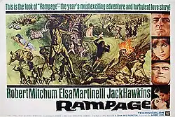Rampage is a 1963 American adventure film starring Robert Mitchum, Elsa Martinelli and Jack Hawkins. Directed by Phil Karlson, it was based on the 1961 novel of the same name by Alan Caillou. The film features a musical score by Elmer Bernstein.
