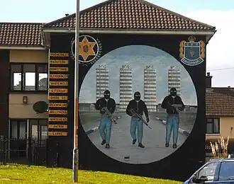 - ^ "Hardliners' anger as Queen replaces mural of UDA gunmen". belfasttelegraph.co.uk.