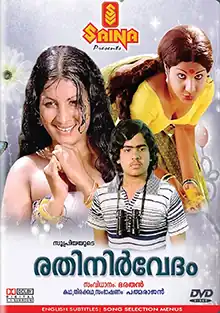 Rathinirvedam (transl. Adolescent desire) is a 1978 Indian Malayalam-language erotic drama film directed by Bharathan and written by P. Padmarajan based on his own novel of the same name.[1] In the film, Pappu, a teenager, is awaiting his pre-degree results to join an engineering course. He gets attracted to his neighbour Rathi, who is a middle-aged woman, and falls hopelessly in love.