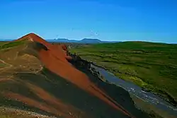- ^ Friese, N., Bense, F.A., Tanner, D.C. et al. From feeder dykes to scoria cones: the tectonically controlled plumbing system of the Rauðhólar volcanic chain, Northern Volcanic Zone, Iceland. Bull Volcanol 75, 717 (2013). https://doi.org/10.1007/s00445-013-0717-2 Retrieved 28 July 2020.