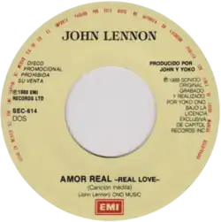 "Real Love" is a song written by the English musician John Lennon, formerly of the Beatles. He recorded six demos of the song in 1979 and 1980 with "Real Life", a different song that merged with "Real Love". In 1988, the sixth take was posthumously released for the documentary soundtrack Imagine: John Lennon. In 1995, a different take was completed by his former Beatles bandmates (Paul McCartney, George Harrison and Ringo Starr) as part of the Beatles Anthology project, along with "Free as a Bird".